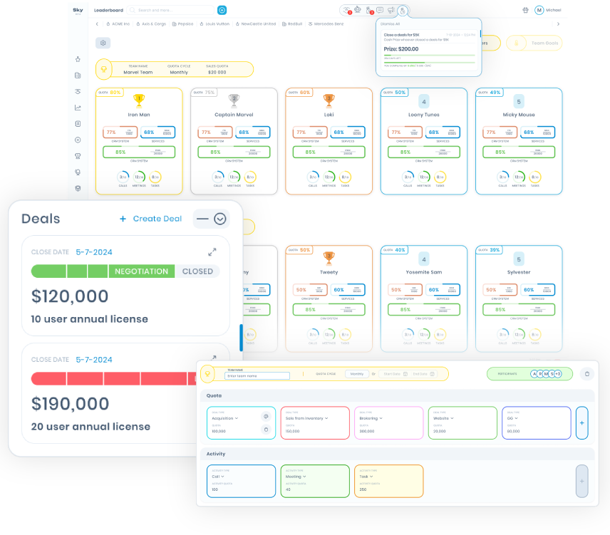 Get the freedom and flexibility to meet your sales quota. Sky is designed to allow you to set any type of quota you can imagine and provide visual tools to create fun & healthy competition.