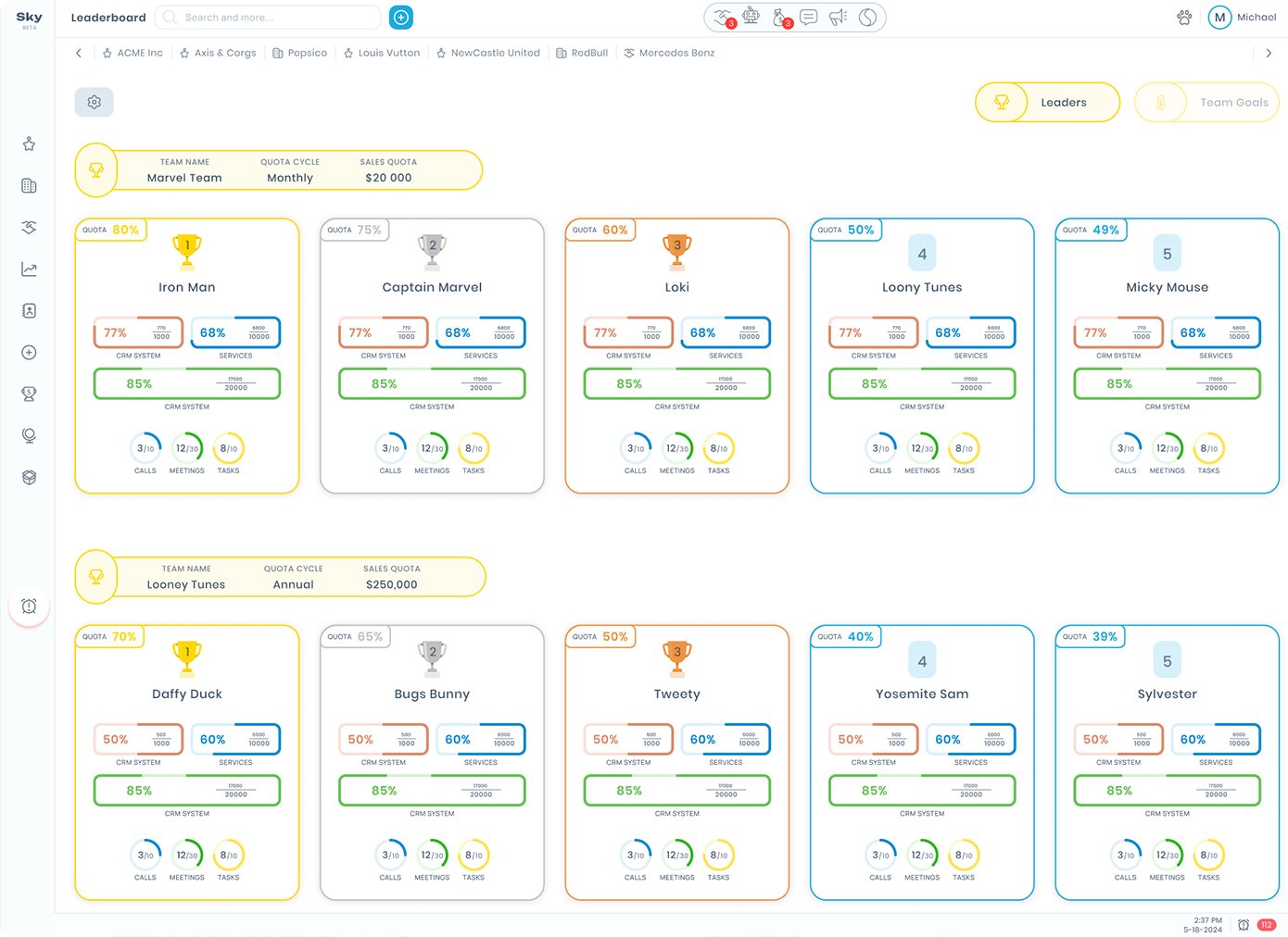Get the freedom and flexibility to meet your sales quota. Sky is designed to allow you to set any type of quota you can imagine and provide visual tools to create fun & healthy competition.