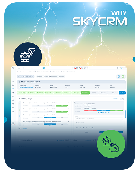 SkyCRM takes the very best of traditional CRM and integrates it into an affordable, easy-to-use modern system that is designed to help your teams meet and exceed their goals.